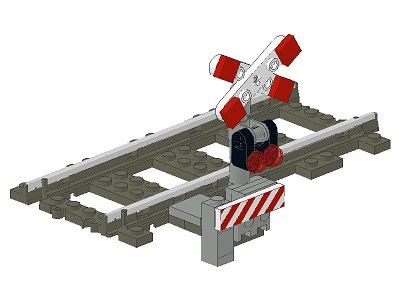 Fits on the track ( 9V or RC). The beams of the cross can be turned to reflect the situation in various countries.